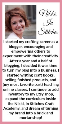 Yay! Another super easy, super quick, and super cute project makes the Nikki, In Stitches Top 10 Countdown! I did have to give you a better picture than the ones in the original post. (Santa, thank you again for bringing me a new camera. How did I ever think those pictures were acceptable??) This little flower can go anywhere…on a card, atop a wrapped package, in the corner of a picture frame, maybe even on a pinback.