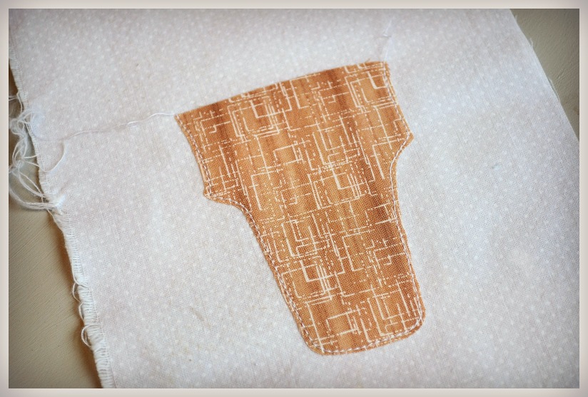 I guess the difference here is that I don’t have an embroidery machine. I’m using just a regular sewing machine for these, so I fuse them in place with the double sided fusible, and then sew around the edges. I’ve used a zig zag in the past, but I never get a nice uniform curve, so for the most part now I use a regular straight stitch. I do get a little bit of fraying, not very much…and it usually stops at my straight stitches so I try to place them as close to the edge of the shape as I can!