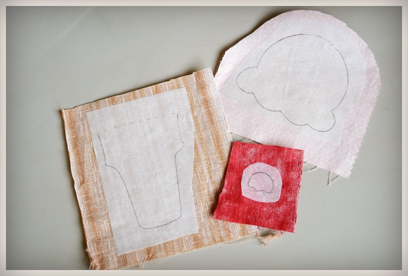- Fabric scraps for your appliqué pieces (Fabric choice for appliqué is important! Let your fabric print do a lot of the work for you! You’re design will have more dimension, and you won’t have as much detail embroidery work to do afterwards.)