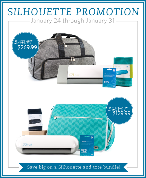 3. Any Silhouette CAMEO® or Silhouette Portrait™ rolling totes in stock for 25% off!